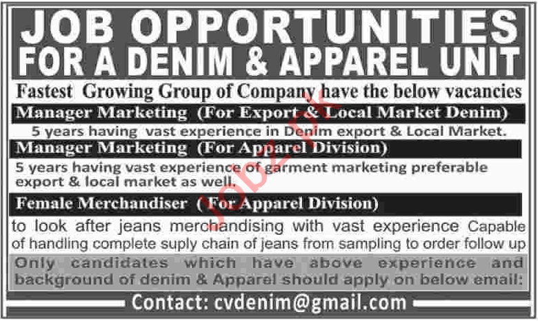Latest Denim Clothing Company Management Posts Karachi 2025