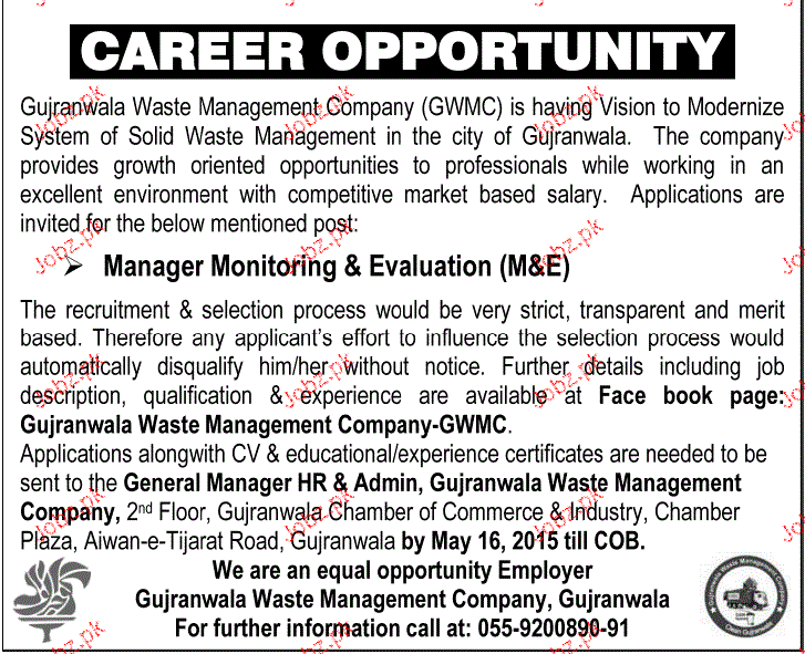 Manager Monitoring & Evaluation Job Opportunity