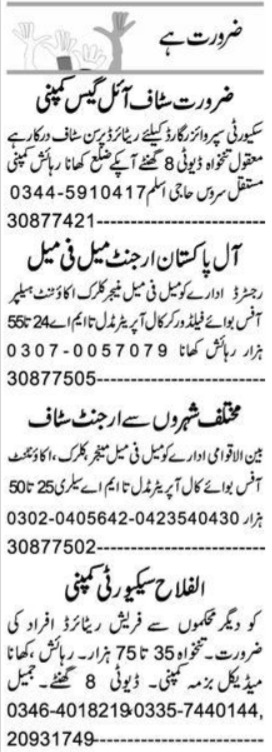 Private Company latest Classifieds Admin Clerical jobs and others can be applied till 11 May 2024 or as per closing date in newspaper ad. Read complete ad online to know how to apply on latest Private Company job opportunities. Skills in Management, Security and Accounting may be preferred for these Private Company jobs. Free food, medical and accommodation may be available.