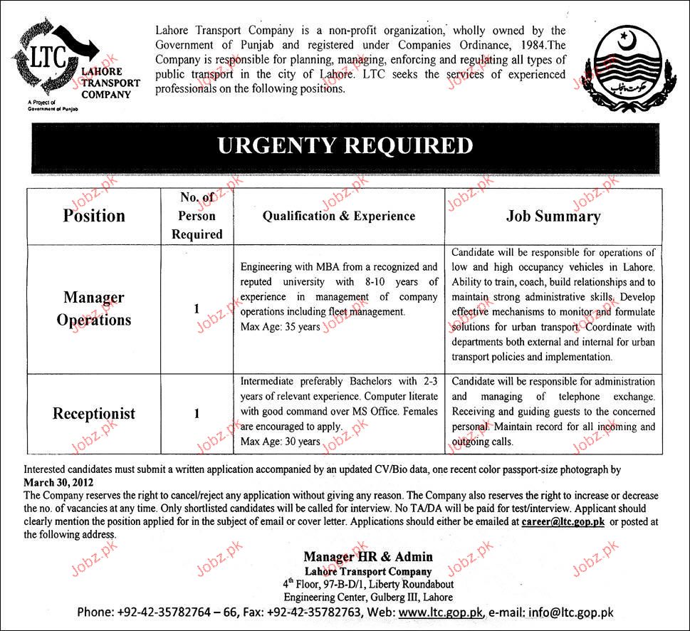 Apply as per details in job advertisement. Login to view further details of how to apply via https://www.jobz.pk online.