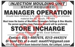 Latest Injection Moulding Industry Management Posts Karachi 2025
