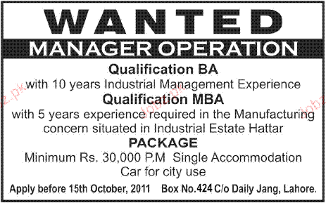 Apply as per details in job advertisement. Login to view further details of how to apply via https://www.jobz.pk online.