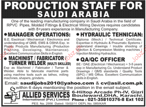 Apply as per details in job advertisement. Login to view further details of how to apply via https://www.jobz.pk online.
