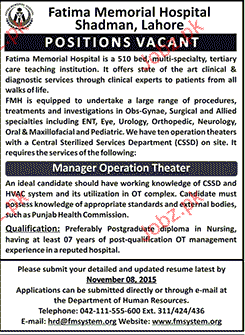 Manager Operation Theater Job Opportunity