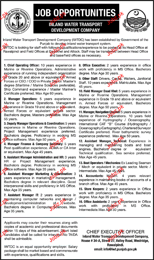 Apply as per details in job advertisement. Login to view further details of how to apply via https://www.jobz.pk online.