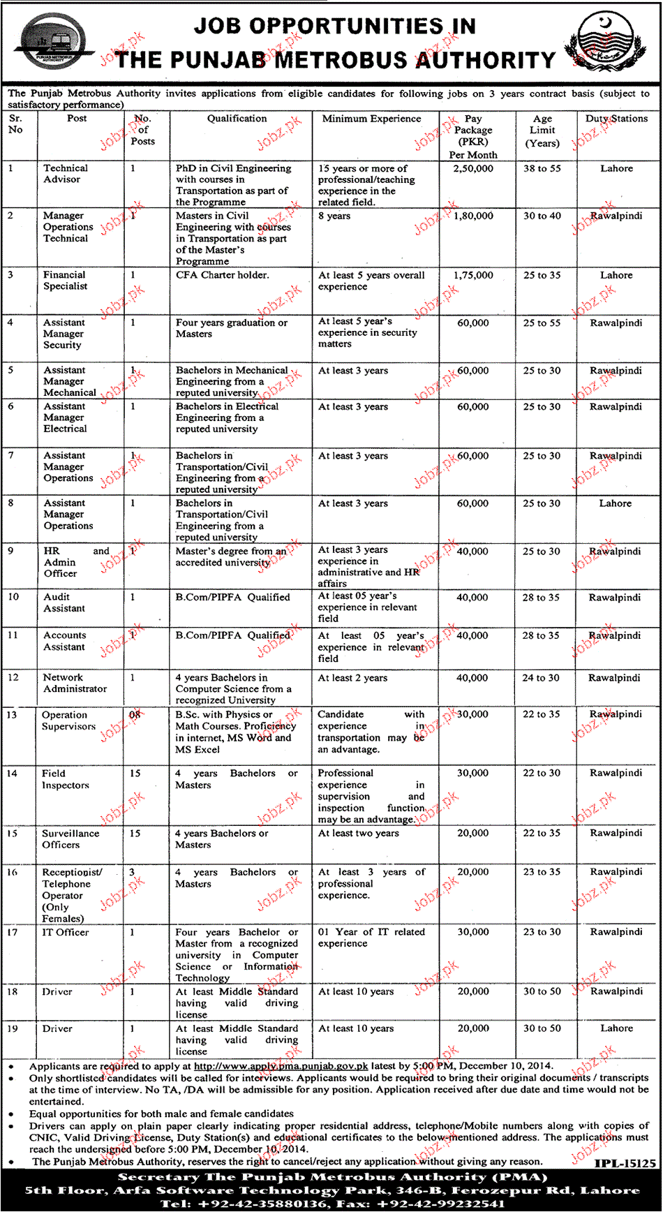 Apply as per details in job advertisement. Login to view further details of how to apply via https://www.jobz.pk online.