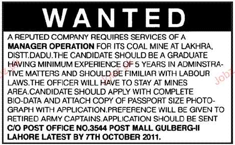 Apply as per details in job advertisement. Login to view further details of how to apply via https://www.jobz.pk online.