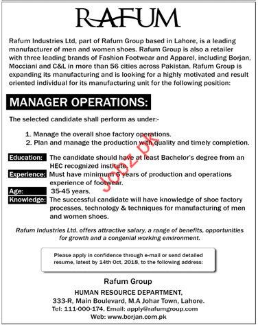 Apply as per details in job advertisement. Login to view further details of how to apply via https://www.jobz.pk online.