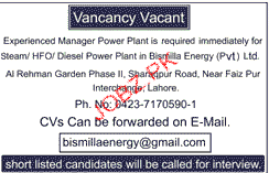 Latest Bismilla Energy Pvt Ltd Management Posts Lahore 2025