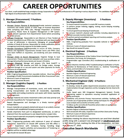 Apply as per details in job advertisement. Login to view further details of how to apply via https://www.jobz.pk online.