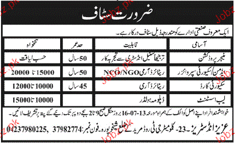 Apply as per details in job advertisement. Login to view further details of how to apply via https://www.jobz.pk online.