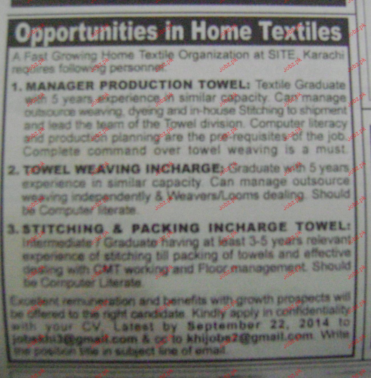 Apply as per details in job advertisement. Login to view further details of how to apply via https://www.jobz.pk online.