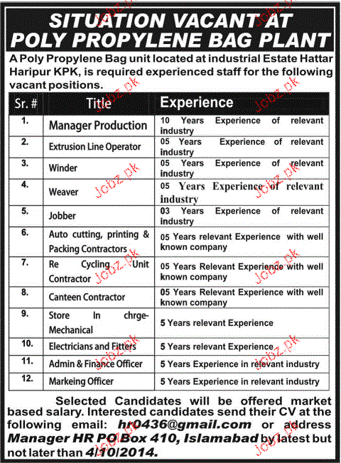 Apply as per details in job advertisement. Login to view further details of how to apply via https://www.jobz.pk online.