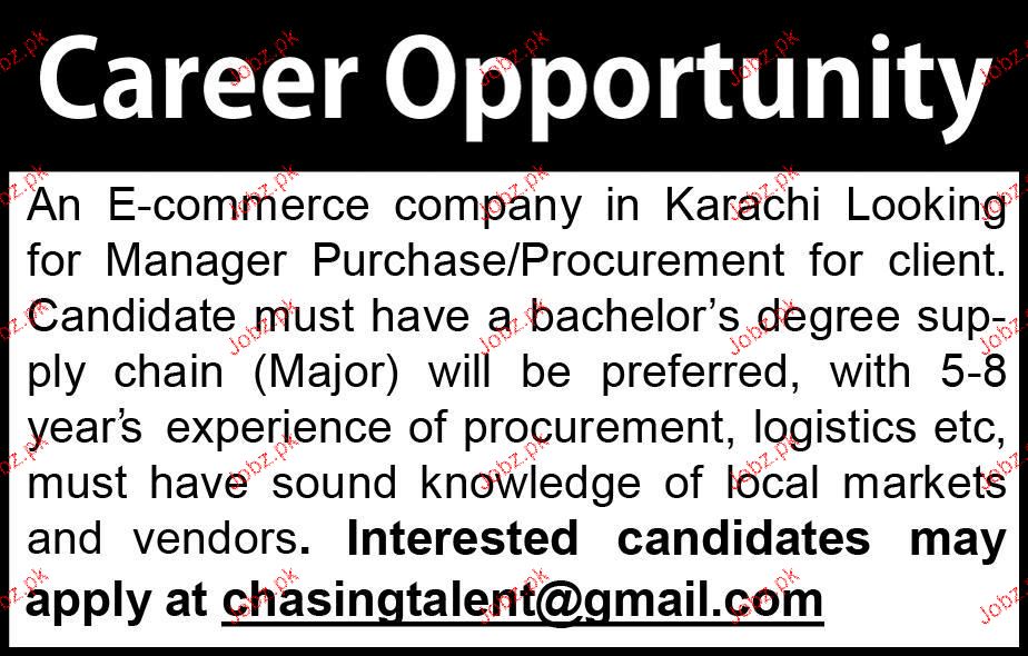 Apply as per details in job advertisement. Login to view further details of how to apply via https://www.jobz.pk online.