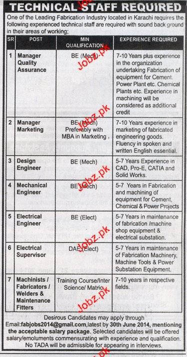 Apply as per details in job advertisement. Login to view further details of how to apply via https://www.jobz.pk online.