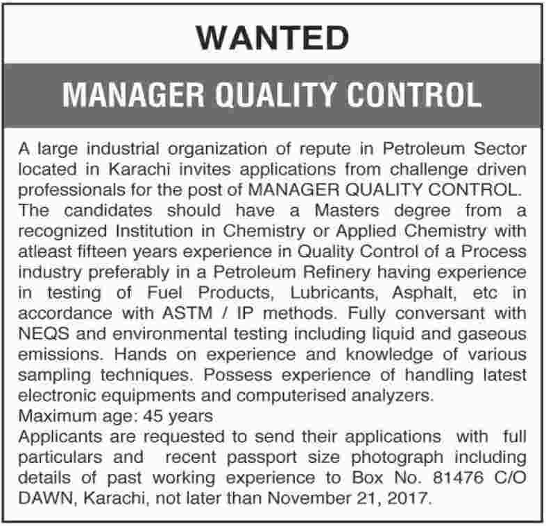 Apply as per details in job advertisement. Login to view further details of how to apply via https://www.jobz.pk online.