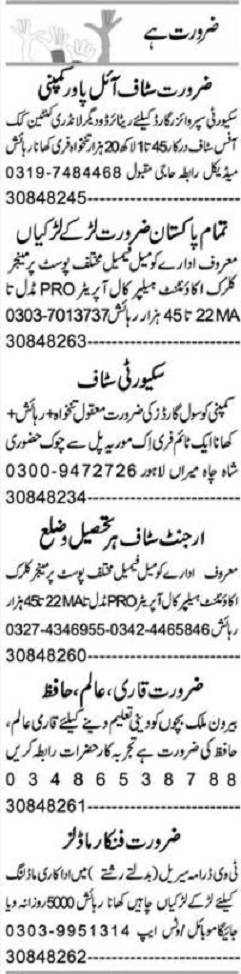 Private Company latest Classifieds Management jobs and others can be applied till May 20, 2023 or as per closing date in newspaper ad. Read complete ad online to know how to apply on latest Private Company job opportunities. Some jobs in Private Company may require skills like Security, Cooking, Account Management, Education & Tutoring, Accounting, Acting, Public Relations, Telephone Handling, Fashion Modeling and Management. On job food and accommodation facility is provided.