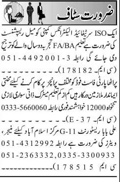 Apply as per details in job advertisement. Login to view further details of how to apply via https://www.jobz.pk online.