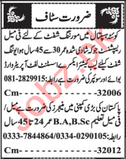 Apply as per details in job advertisement. Login to view further details of how to apply via https://www.jobz.pk online.