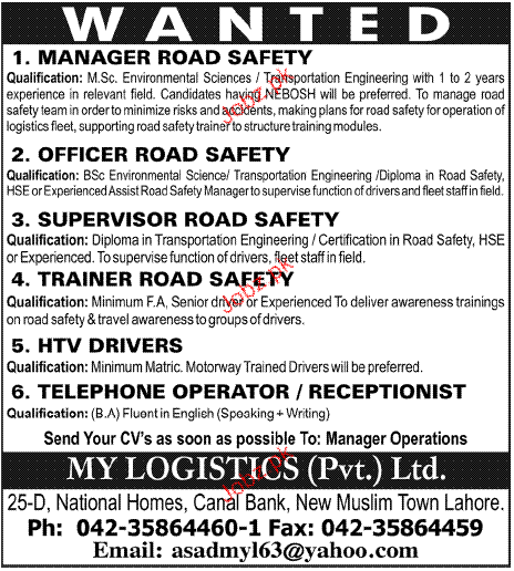 Manager Road Safety, Trainee Road Safety Job Opportunity