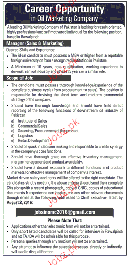 Apply as per details in job advertisement. Login to view further details of how to apply via https://www.jobz.pk online.