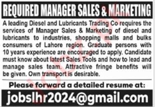 Manager Sales & Marketing Jobs At Diesel & Lubricants Co