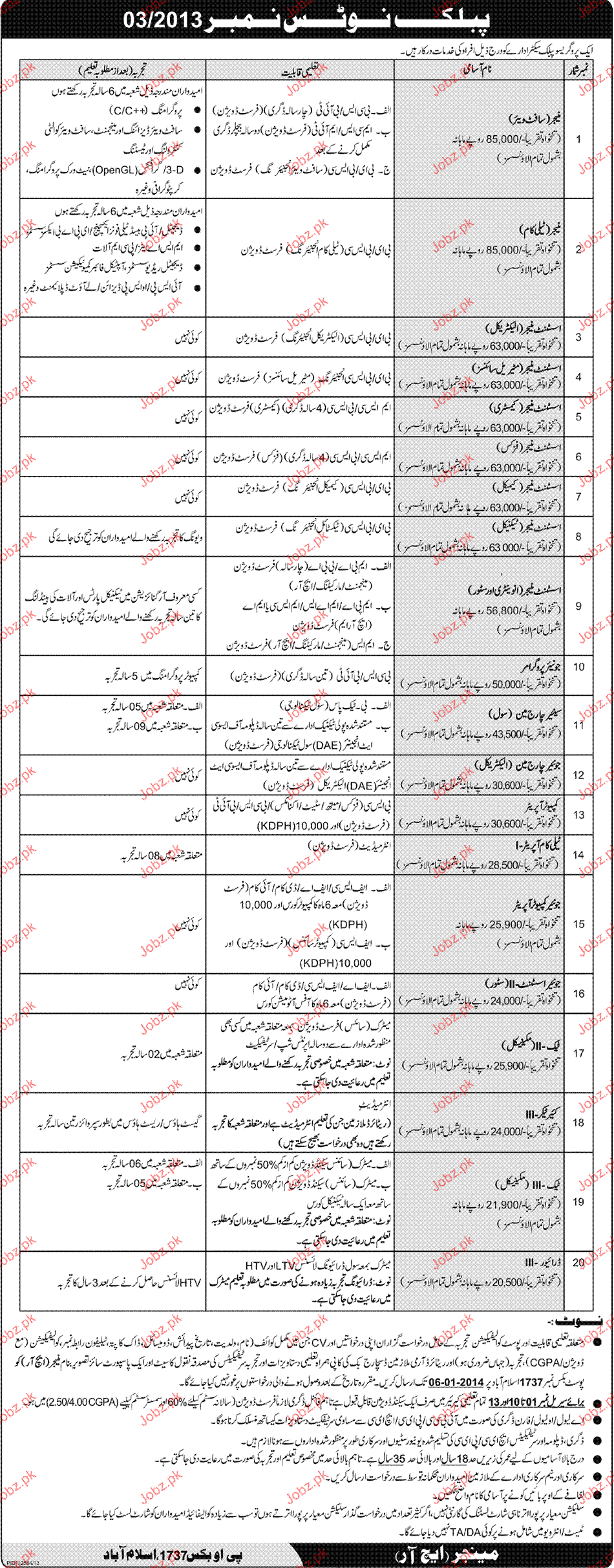 Apply as per details in job advertisement. Login to view further details of how to apply via https://www.jobz.pk online.