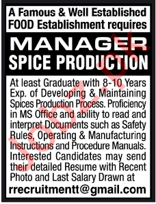 Latest Food & Beverages Company Management Posts Karachi 2025