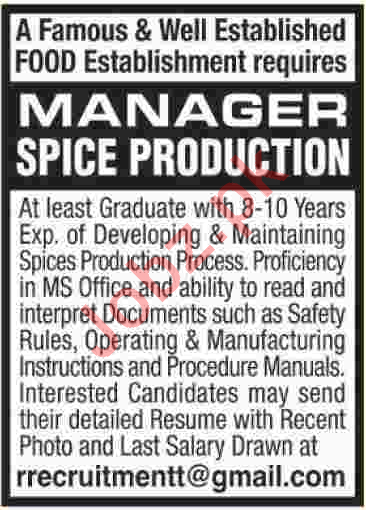 Manager Spice Production Required