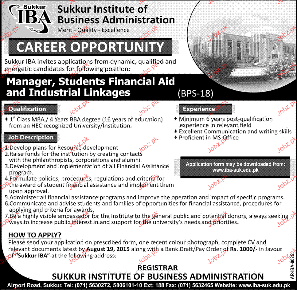 Apply as per details in job advertisement. Login to view further details of how to apply via https://www.jobz.pk online.