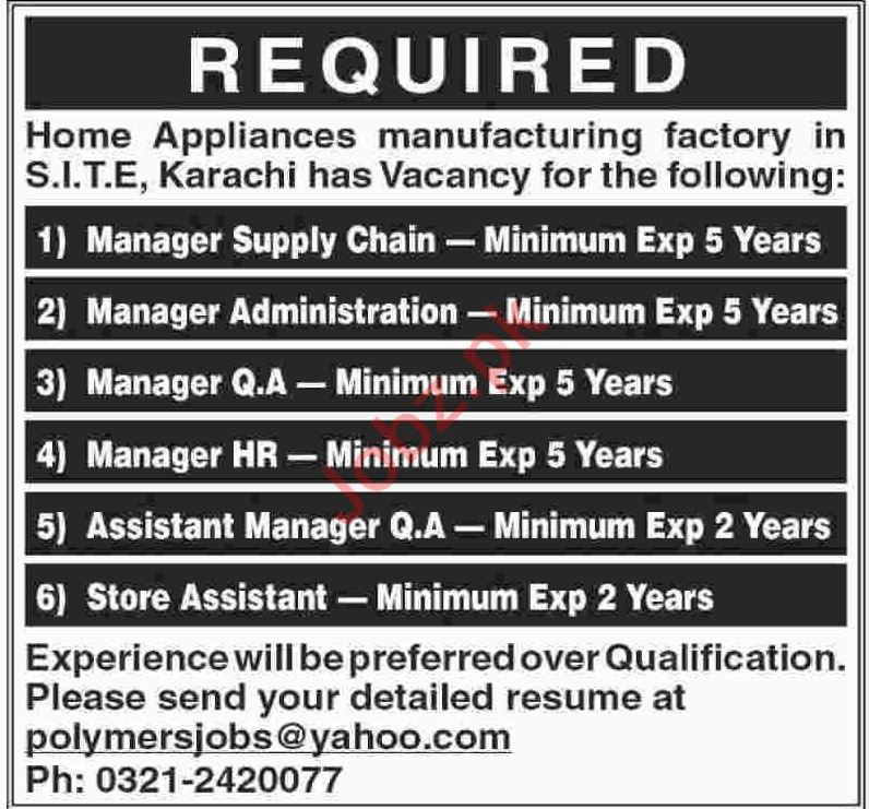 Latest Home Appliances Group Industrial Posts Karachi 2025