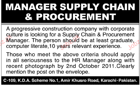 Apply as per details in job advertisement. Login to view further details of how to apply via https://www.jobz.pk online.