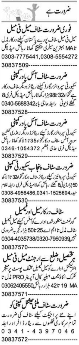 Private Company jobs advertisement dated about 13 December 2022 in daily Express Newspaper invites application for the vacant post of helper, security supervisor guard, accountant, call operator, security guard, pro, clerk, manager, office staff, security supervisor and public relation officer in Multan, multan Punjab Pakistan. Bachelor, Matric, Intermediate and Middle etc. educational qualification will be preferred.