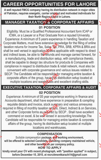 Apply as per details in job advertisement. Login to view further details of how to apply via https://www.jobz.pk online.