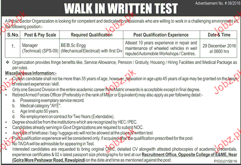 Apply as per details in job advertisement. Login to view further details of how to apply via https://www.jobz.pk online.