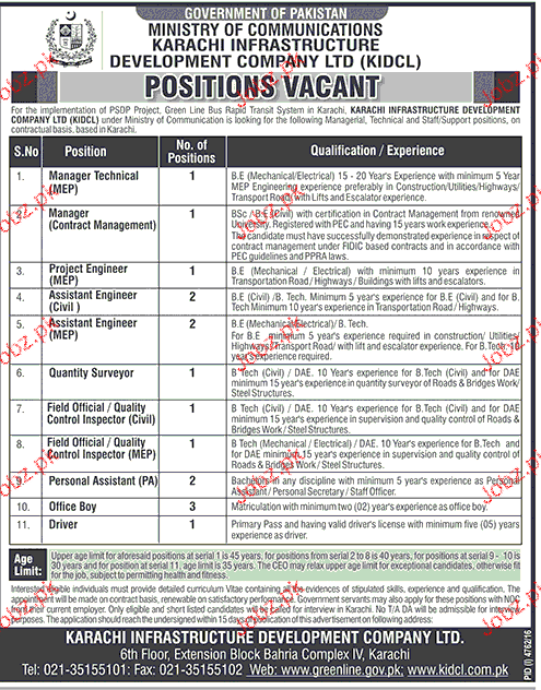 Apply as per details in job advertisement. Login to view further details of how to apply via https://www.jobz.pk online.