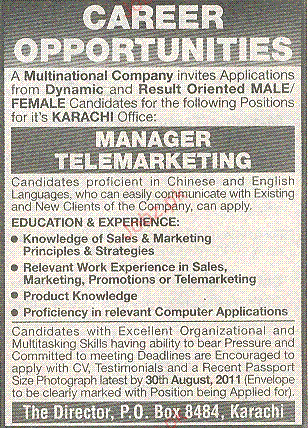Apply as per details in job advertisement. Login to view further details of how to apply via https://www.jobz.pk online.