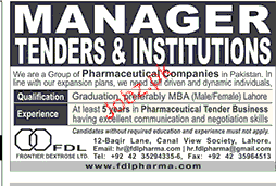 Manager Tenders & Institutions Job Opportunity