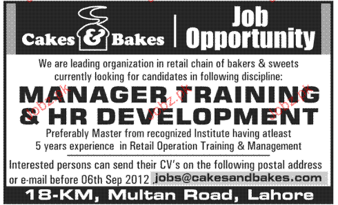 Manager Training & HR Development Job Opportunity