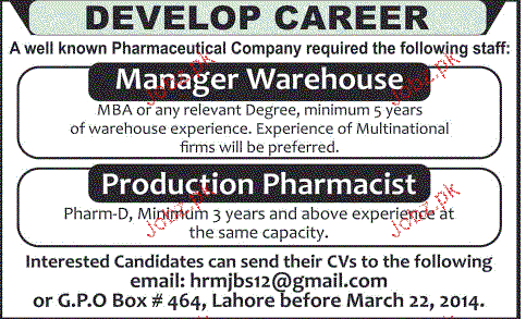 Apply as per details in job advertisement. Login to view further details of how to apply via https://www.jobz.pk online.