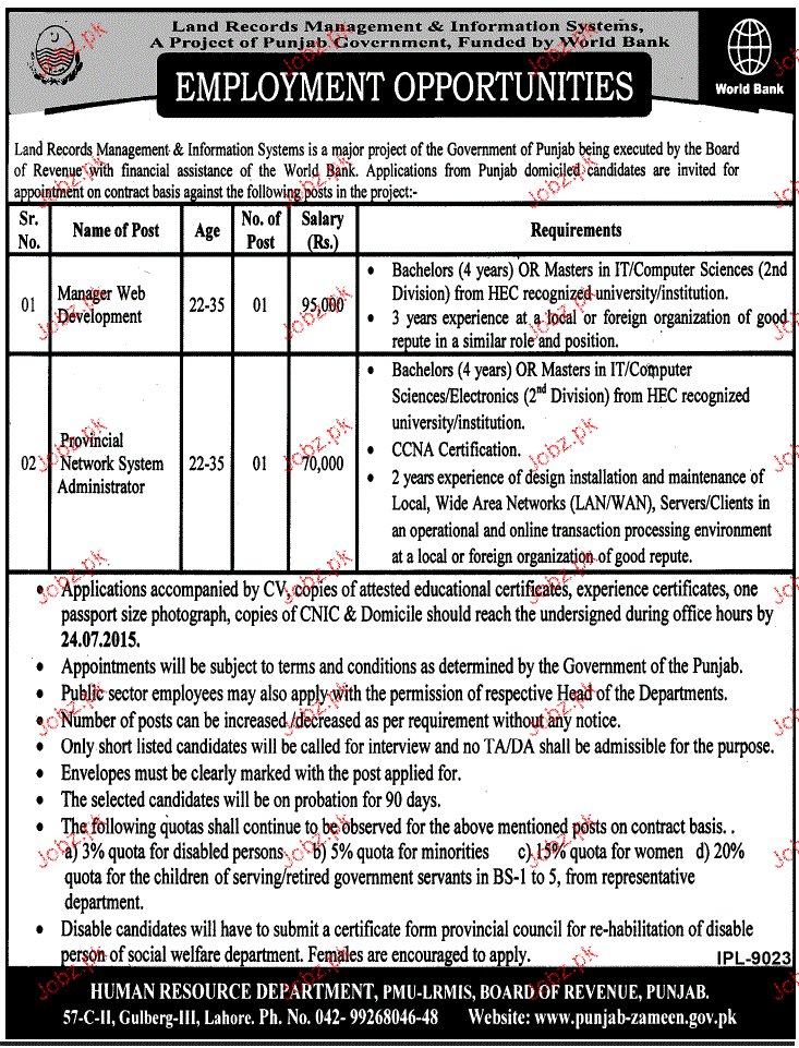 Apply as per details in job advertisement. Login to view further details of how to apply via https://www.jobz.pk online.