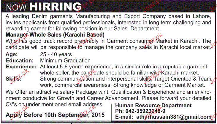 Apply as per details in job advertisement. Login to view further details of how to apply via https://www.jobz.pk online.
