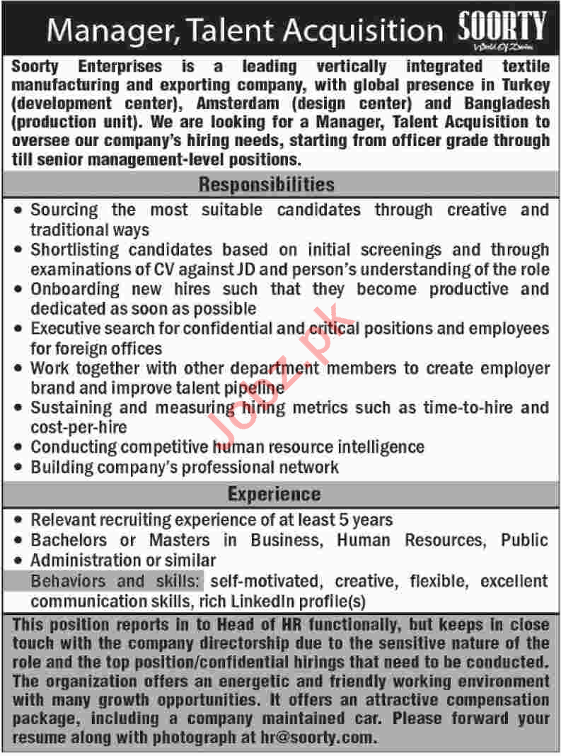Latest Soorty Enterprises Management Posts Islamabad 2025