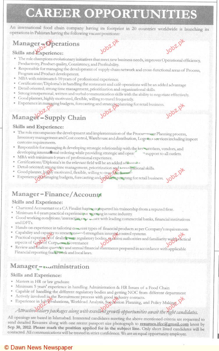 Apply as per details in job advertisement. Login to view further details of how to apply via https://www.jobz.pk online.