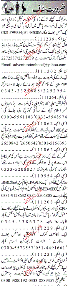Managers, Receptionist, Waiters, Security Guards Wanted
