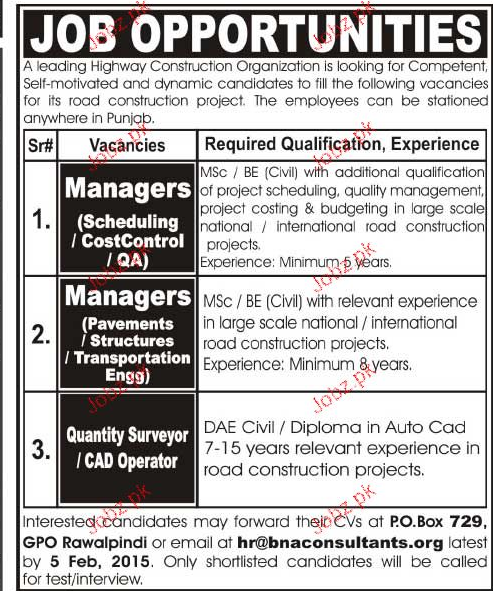 Managers Scheduling, Manager And Quality Surveyors Wanted