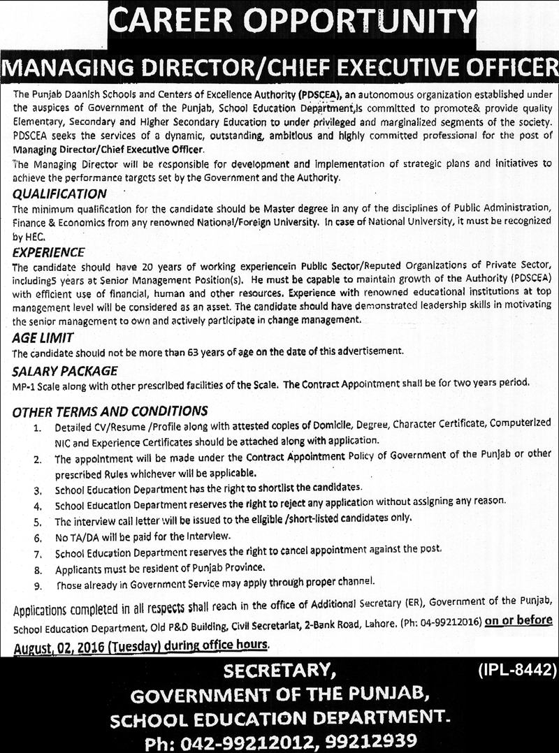 Apply as per details in job advertisement. Login to view further details of how to apply via https://www.jobz.pk online.