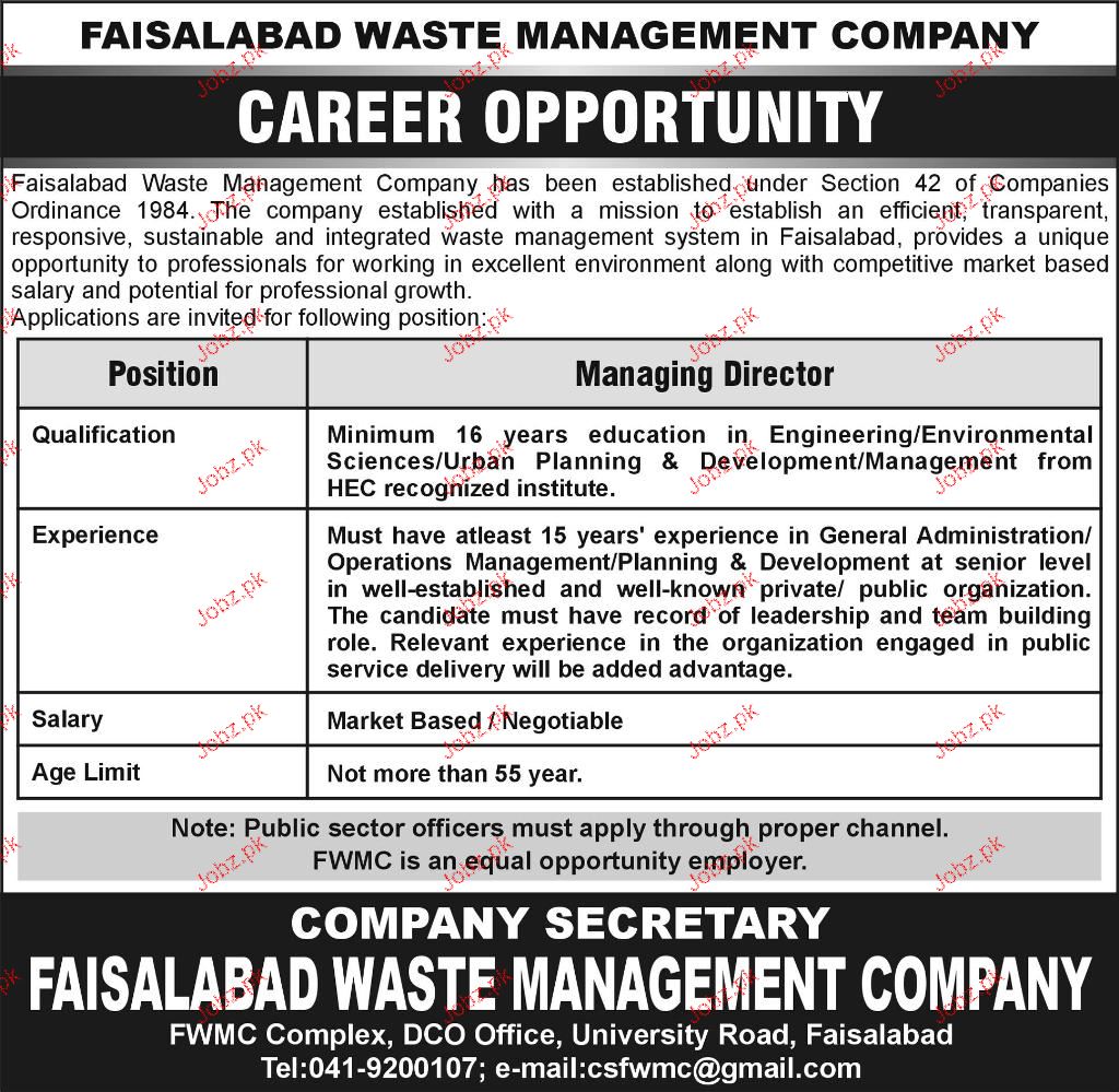 Managing Director Job In Faisalabad Waste Management Company