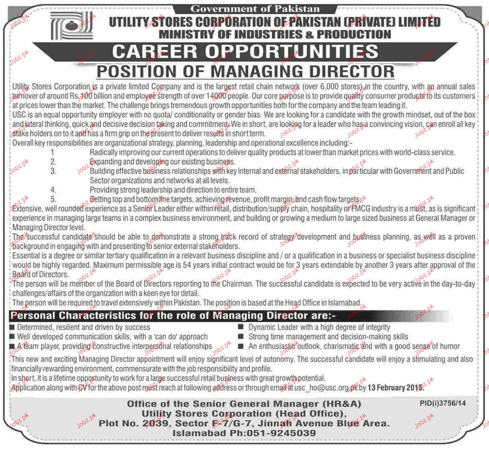 Managing Director Job In Ministry Of Industries And Producti