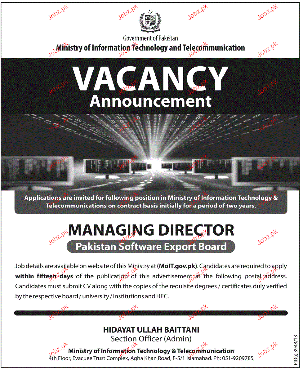 Latest Ministry of Information Technology Management Posts Islamabad 2025